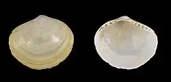 | Internal and external views of a right valve of Yoldia lanceolata | |
