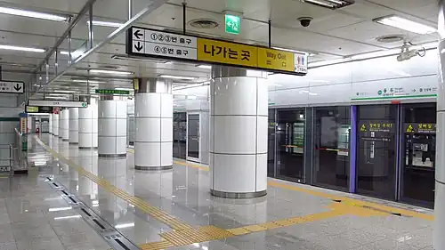 - ^ Monthly Number of Passengers between Subway Stations Archived October 6, 2014, at the Wayback Machine. Korea Transportation Database, 2013. Retrieved 2013-10-15.