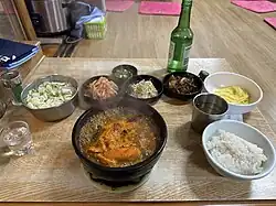 Yonggeumok (Korean: 용금옥; Hanja: 湧金屋; lit. house of flowing gold) is a historic Korean restaurant chain in Seoul, South Korea.[2] It is among the oldest active restaurants in South Korea and is the third oldest operating restaurant in Seoul, having first opened in 1932,[3] and specializes in the pond loach soup dish chueo-tang.[2] The restaurant has been operated by three generations of the same family since its founding. It has two branches: one in Da-dong, Jung District, and another in Tongin-dong. The Da-dong location is the older of the two. The restaurant has become a famous tourist attraction. It is listed on the Michelin Guide as a Bib Gourmand restaurant.[4] In 2013, it was made a Seoul Future Heritage.[5]