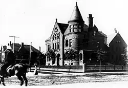 The club's building was originally constructed between 1889 and 1892 as a residence for businessman George Gooderham Sr. (1830–1905) and his large family.[1] Gooderham was a son of William Gooderham (1790–1881) and served as president of the Gooderham and Worts distillery.[2] The house was designed in the Romanesque Revival style by architect David Roberts Jr., who also designed the Gooderham Building downtown.