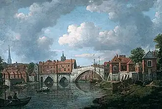 Eighteenth-century York had no notable manufactures; its economy was based on its importance as a market centre, supplied by a wide surrounding area.[60] Hams were sent from the countryside to the market of that city, from where ships sailed to London via the River Ouse.[61] It has been suggested, but without substantiation, that they were called 'York' hams because they arrived in London on the York stagecoach.[62] More probably they arrived from York — which was a port — by sea. Before railways, coastal shipping was very much cheaper than carriage by land,[63] and the River Ouse was commercially navigated up to the City of York.[64] That they went by water is corroborated by William Ellis.[10] The sea journey need not have harmed them; indeed York hams were said to be at their best in India, for the sea voyage improved them.[65] The Oxford English Dictionary explains "York" can be used attributively in names of things originating in Yorkshire (the county), giving the example York ham.[58]