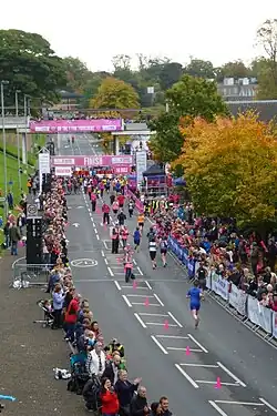 ![]() Runners finishing the Yorkshire Marathon in 2015 | |