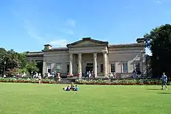The museum was founded by the Yorkshire Philosophical Society (YPS) to accommodate their geological and archaeological collections, and was originally housed in Ousegate, York, until the site became too small. In 1828, the society received by royal grant, 10 acres (4 ha) of land formerly belonging to St Mary's Abbey for the purposes of building a new museum. The main building of the museum is called the Yorkshire Museum; it was designed by William Wilkins in a Greek Revival style and is a Grade I listed building. It was officially opened in February 1830, which makes it one of the longest established museums in England. A condition of the royal grant was that the land surrounding the museum building should be a botanic gardens and one was created in the 1830s. The botanic gardens are now known as the Museum Gardens. On 26 September 1831, the inaugural meeting of the British Association for the Advancement of Science was held at the Yorkshire Museum.[2]