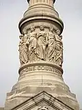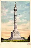 The Yorktown Victory Monument is a monument erected in Colonial National Historical Park in Yorktown, Virginia, commemorating the 1781 victory at Yorktown and the alliance with France that brought about the end of the American Revolution and the resulting peace with England after the American Revolutionary War. Designed by Richard Morris Hunt, the monument was installed in 1884. At the top stands a figure of Liberty sculpted by John Quincy Adams Ward. That element was destroyed by lightning in 1942. It was replaced in 1957 by a figure of Victory by Oskar J. W. Hansen.[1]