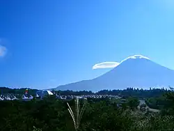 The music video features the members of Sakanaction in traditional Japanese clothing and gaudy make-up, at the foot of Mount Fuji alongside two traditional Japanese dancers.[21] The video is composed of several scenes where the camera's distance grows closer to the performers, showing scenes sequentially closer in time to the beat of the song.[40] While some of these takes were shot in daylight, others were taken in darkness, while the band or Yamaguchi were lit by colored lights. In the latter part of the video, it is revealed that the view of the band is from the perspective of a high school girl (played by actress and model Yui Miura),[40][41] who wears binoculars to view the band. The camera then focuses on the girl using the same technique that the band was shot in. The girl finds Yamaguchi performing the song directly in front of her, and finally decides to run away.