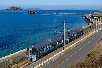 The Yosan Line (予讃線, Yosan-sen) is the principal railway line on the island of Shikoku in Japan, connecting the major cities of Shikoku, and via the Honshi-Bisan Line, with Honshu. It is operated by the Shikoku Railway Company (JR Shikoku), and is aligned approximately parallel with the Inland Sea coast, connecting the prefectural capitals of Takamatsu (Kagawa Prefecture) and Matsuyama (Ehime Prefecture) and continuing on to Uwajima. The name of the line comes from Iyo (伊予) and Sanuki (讃岐), the old names of Ehime and Kagawa, respectively.