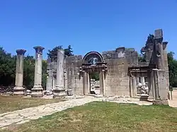 Shenberger was deeply interested in the design and artistry of ancient ruins. He was impressed with the frescos and carvings unearthed at the Dura-Europos synagogue. From his restorative work carried out at heritage sites all over Israel, including the Kfar Bar'am synagogue, he noted the ancient builders' usage of decorative elements and local materials, such as mosaics, and integrated some of these ideas into his own plans.[12] In 1956, he won a competition to renovate the tomb of Rabbi Shimon Bar Yochai in Meron.[16][17]