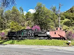 Today, the Yosemite Valley Railroad no longer exists, but some remnants can still be found. The El Portal Inn, which served as the railroad's terminus, burned down in 1932.[35] Some sections of the re-routed railbed were submerged when Exchequer Dam was expanded in the 1960s. However, a few of the railroad's tunnels still remain under Lake McClure and in Merced Canyon. The National Park Service relocated several surviving structures, such as the original hand-turned turntable, from Bagby to El Portal. At El Portal, Caboose No. 15, one of the few surviving pieces of rolling stock, is also on display. Locomotive 29, which was sold to a Mexican railroad after the Yosemite Valley Railroad's closure, is currently on static display in Veracruz, Mexico.[36]