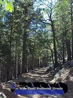 Eleven-mile Meadow has had many different uses through the years. The meadow had been used for cattle grazing operations until the early 1930s, as a logging camp and as a CCC camp which was established in 1933.[6] Earlier on, Stage coaches brought travelers to the area with a stop at the Eleven Mile Change Station which was near Chinquapin.[7] In the late 1800s the roadbed was converted to a rail bed. The Yosemite Lumber Company used it transport logs to the incline at Henness Ridge. The incline lowered logs to the Merced River far below.