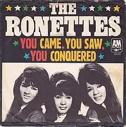 "You Came, You Saw, You Conquered!" is a 1969 song by the Ronettes. It was their final charting U.S. hit, reaching #108 Billboard and #92 Cash Box.[1] In Canada, the song peaked at #73 for two weeks.[2] It was the first of a series of non-album single releases by the group.