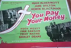 You Pay Your Money is a 1957 British 'B'[1] crime drama film directed by Maclean Rogers and starring Hugh McDermott, Jane Hylton and Honor Blackman.[2] It was written by Michael Cronin and Rogers.