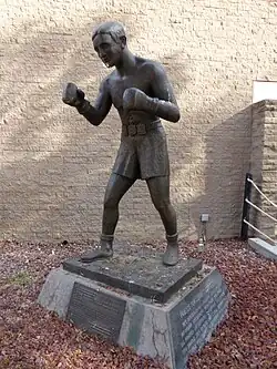 Corbett boxed until August 20, 1940, winning his last fight against Richard "Sheik" Rangel. He retired with a 123-12-20 (33 KOs) record.[15][16] He later operated a bar in Fresno. On October 2, 1945 Corbett survived a serious car accident on Highway 99 near Delano, suffering a fractured skull and other injuries. He died in Auberry, California at the age of 88, after about 20 years afflicted with Alzheimer's disease.[17] A statue of him, posed in a fighting stance and boxing gloves, was erected in Fresno. The sculpture was realized by Clement Renzi.