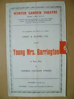 Young Mrs. Barrington is a 1945 play by the British writer Warren Chetham-Strode. It concerns the return home of a fighter pilot following the Second World War.