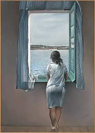 Young Woman at a Window is a 1925 oil on paper realist work by Salvador Dalí, produced in his youth. It shows the painter's sister Ana Maria, seen from behind in front of a window at Cadaqués. It is now in the Museo Reina Sofía, in Madrid.[1]