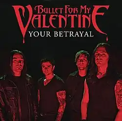 "Your Betrayal" is a song by Welsh heavy metal band Bullet for My Valentine and was released as the first and lead US single from their third album, Fever. The song was set for release on 8 March 2010 to the radio;[3] and, unexpectedly, was released early as a Digital 45 on iTunes along with the track "Begging for Mercy" on 2 March 2010.[4] Before that, "Begging for Mercy" was offered for free download on 14 February 2010 from the band's official website for a limited time.[5] "Your Betrayal" was nominated for the Kerrang! Award for Best Single.[6]