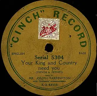 - ^ a b The AHRC Research Centre for the History and Analysis of Recorded Music Search for "Your King and Country Need You"