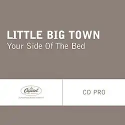 "Your Side of the Bed" is a song recorded by American country music group Little Big Town. It was released April 8, 2013, as the third single from their fifth studio album, Tornado.[1] The song was written by the group alongside Lori McKenna. They debuted the song at the 2013 ACM Awards.[2]
