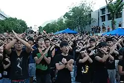 Youth in Hong Kong, according to the University of Hong Kong Statistical Profile, comprises citizens of the Chinese territory of Hong Kong aged 15–24 years. As of 2011, youth in Hong Kong ages 15–24 made up 12.4 per cent of Hong Kong's overall population at 875,200 people.[1] Hong Kong is a hybrid culture, influenced by [[Chinese culture |China]] and Britain, but overall by its international economic ties and neoliberal policies, which plays a role in shaping the lives of the youth in Hong Kong. The youth in Hong Kong is unique in the fact that many are living Transnationalist identities. The demographics are not just ethnically Chinese youth in Hong Kong, but also youth that are ethnically white, Indonesian, Filipino, which can be seen in Demographics of Hong Kong, and that creates a unique society. "Although with a dominant Chinese population, Hong Kong is an international city and is a mix of East and West rich in cultures, history, and religions."[2] The disparity between the rich and poor within Hong Kong has been growing wider.[1]