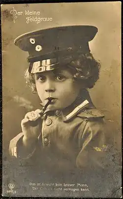 A German postcard from the First World War, which reads: „He is verily not a brave man, if he cannot stand tobacco.“
