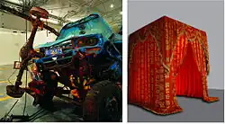 The same year, following the Sichuan earthquake, he was volunteered researcher for one year in the disaster area, from which he produced some of his most iconic and controversial artworks, Sounding off 5.12 with Dong Feng and Red Curtains 5.12. During this year, he conducted a survey gathering local testimonies. The testimonies produced photographs, videos, and installations made using materials collected from the disaster area.[5][6]
