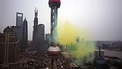 Since 2011 and his artwork the Scented Air 6000 m3 presented at the China Pavilion of the 54th Venice Biennale,[7] Yuan uses fog media to pervade the exhibition space or to interfere with people.[8][9] In his new productions, he has developed a variety of devices and different mechanisms to produce fog, invading public spaces and disrupting the established order (The Stroll, 2012; Air Strikes around the world, 2013).