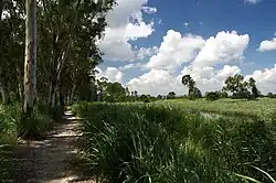 Nam Sang Wai (南生圍) covers a roughly triangular area. It is bordered by the Shan Pui River in the west, separating it from Yuen Long Industrial Estate, the Kam Tin River in the east and a branch of the Kam Tin River in the south. It is home to many birds, including seagulls, Northern Pintails (Anas acuta), Yellow-nib Ducks (Anas poecilorhyncha) and Black-faced Spoonbills (Platalea minor). Flora includes reeds and mangroves.