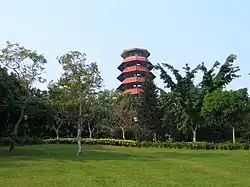 Yuen Long Park (元朗市鎮公園) is a park at Yuen Long Town with recreational facilities. There is a 7-storey pagoda enclosing an aviary, which has become a landmark of Yuen Long.