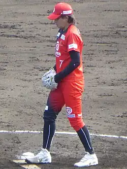 Yukiko Ueno (上野 由岐子, Ueno Yukiko; born July 22, 1982) is a Japanese professional softball pitcher for Bic Camera Takasaki Bee Queen and Japan women's national softball team.[1] She won a bronze and two gold medals from the 2004, 2008 and 2020 Summer Olympics, respectively. She became the first pitcher ever to throw a perfect game at the Olympics, against China in Athens.[2] With a fastball that tops out at 128 km/h (80 mph), she is widely recognized as the fastest pitcher in women's softball, although her signature pitch is her change-up, which is often cited as the best in the world.[3]