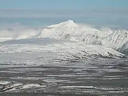 The climate around the Yukon River Basin varies because of factors like its topography and large size. This large area covers land from Alaska and from parts of the Yukon Territory in Canada.[7] The precipitation over the entire basin is approximately 19 inches (480 mm) per year. With the diverse topography certain places receive more rain than others. Some areas receive less than 10 inches (250 mm) of rainfall a year and others receive up to 50 inches (1,300 mm). With that being said, annual rainfall is greater on tall, rugged mountains than on flat lowland areas of the whole region.[1] The average temperature now for the Yukon River Basin is approximately 30 °C (86 °F) in the summer and −40 °C (−40 °F) in the winter.[7] However, the region has some of the most extreme temperature changes for an area that is located in a continental zone.[7][8]