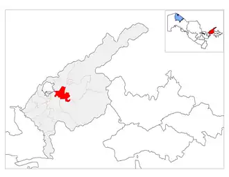Yuqorichirchiq is a district of Tashkent Region in Uzbekistan. The capital lies at the town Yangibozor.[1] It has an area of 440 km2 (170 sq mi)[2] and it had 138,900 inhabitants in 2021.[3] The district consists of 4 urban-type settlements (Yangibozor, Mirobod, Xitoy Tepa) and 9 rural communities (Oqovul, Arganchi, Bordonkoʻl, Jambul, Sakson ota, Navroʻz, Istiqlol, Surnkent, Tinchlik).[1]