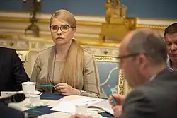 Yulia Volodymyrivna Tymoshenko[a][b] (née Hrihyan[c] born 27 November 1960) is a Ukrainian politician, who served as Prime Minister of Ukraine in 2005, and again from 2007 until 2010; the first woman in Ukraine to hold that position.[2] She has been a member of the Verkhovna Rada as People's Deputy of Ukraine several times between 1997[3] and 2007, and presently as of 2014, and was First Deputy Prime Minister of Ukraine for the fuel and energy complex from 1999 to 2001. She is a Candidate of Economic Sciences.[4]