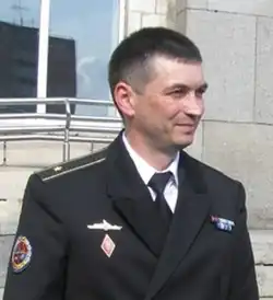 Yurii Petrovych Fedash (Ukrainian: Федаш Юрій Петрович; born 25 August 1980) is a Ukrainian military sailor and captain of the first rank of the Ukrainian Navy, and former commander of the sea minesweeper Cherkasy. During the occupation of Crimea by Russian troops, the crew of the minesweeper refused to surrender to the Russian occupiers and under his leadership, made repeated attempts to break through Donuzlav which was blocked by the Russians.[1] He was made an honorary citizen of Cherkasy.