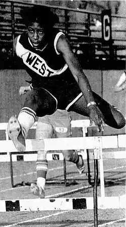 While attending West High School in Sioux City, Greer-Albrecht participated in the girls' state track meet during her senior year in 1978, when she won the 100 and 200 hurdles events. In 2005, it was reported by the Sioux City Journal that her records in both hurdles have never been beat, and the 200 hurdles was discontinued. The same article reported that she also held records for sprint medley and 4x400 relay teams.[2] At the end of her time at West High School, Greer-Albrecht held 10 of 19 West High School records. She later attended the University of South Dakota. In 1979, she was named as the Female College Athlete of the Year by the South Dakota Sportswriters Association.[1] In 1982, Greer-Albrecht became the first female track all-American at the University of South Dakota.[1] In college, Greer-Albrecht specialized in sprints, hurdles, and long jumps. She was a seven-time North Central Conference champion.[3]