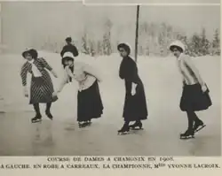 Yvonne Margaine-Lacroix (November 9, 1892 – June 28, 1944) was a French figure skater of the early 20th-century. In 1909 she became the first woman crowned champion of France in the French Figure Skating Championships.[1]