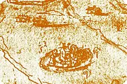 The main castle has never been excavated. The only reliable source about the main castle / motte is the 1569 map by Horenbault. It depicts the castle as a round walled site with a moat, some towers on the wall, and a central keep. The outer bailey was not depicted.[6]