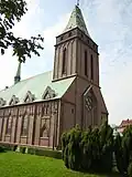 On 24 January 1945, the Soviets captured the city, then committed a massacre of some 100 inhabitants,[32] and later deported some inhabitants to the Soviet Union, while other inhabitants were expelled west in accordance to the Potsdam Agreement. However, in stark contrast to the other cities in the so-called Recovered Territories, three quarters of the mostly bilingual inhabitants were spared expulsion.[33]
