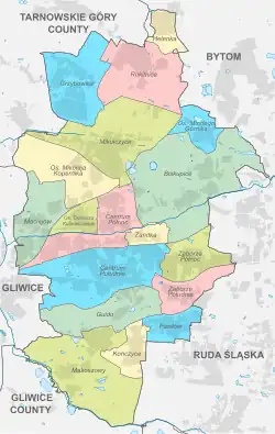 On 17 September 2012, the Zabrze city council decided on a new administrative division of the city. Zabrze was subsequently divided into 15 districts and 3 housing estates.[36]