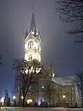 Zabrze is located in the Silesian Voivodeship. It is one of the cities composing the 2.7 million inhabitant conurbation referred to as the Katowice urban area, itself a major centre in the greater Katowice-Ostrava metropolitan area which is populated by just over five million people.[5] The population of Zabrze as of December 2021 was 168,946, down from June 2009 when the population was 188,122.[1] Zabrze is bordered by three other cities of the metropolitan area: Gliwice, Bytom and Ruda Śląska. The city is particularly known as the home of Górnik Zabrze, one of the most accomplished Polish football clubs. The local historic coal mine complex is listed as a Historic Monument of Poland as one of the most valuable of its kind in Poland.[6]