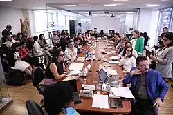 Arianna Tanca, Minister of Women and Human Rights,[5] César Córdova, Ombudsman and Rovira, discuss reparations for the victims of femicide in 2024