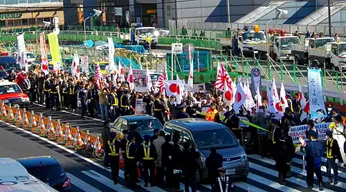 Zaitokukai, full name Zainichi Tokken o Yurusanai Shimin no Kai (在日特権を許さない市民の会; lit. 'Association of Citizens against the Special Privileges of the Zainichi'), is an ultra-nationalist and far-right extremist political organization in Japan, which calls for an end to state welfare and alleged privileges afforded to Zainichi Koreans.[3] It has been described by the National Police Agency as a potential threat to public order due to its "extreme nationalist and xenophobic" ideology.[3]