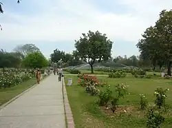 Zakir Husain Rose Garden, is a botanical garden located in Chandigarh, India and spread over 30 acres (120,000 m2) of land,[1] with 50,000 rose-bushes of 1600 different species.[2] Some important Rose species in this Garden are the Royal William Rose, Europa-Rosarium, Rosa Gallica, Beach Rose, Rosa chinensis, Centifolia roses, Rosa glauca. Named after India's former president, Zakir Husain and created in 1967 under the guidance of Mohinder Singh Randhawa, Chandigarh's first chief commissioner, the garden has the distinction of being Asia's largest.[2] The garden has not only roses but also trees of medicinal value. Some of the medicinal plants that can be spotted here are bel, bahera, harar, camphor and yellow gulmohar. The rose plants have been planted in carved-out lawns and flower beds. The garden is open year-round, with peak bloom occurring from December to February, attracting thousands of visitors during the annual Rose Festival.