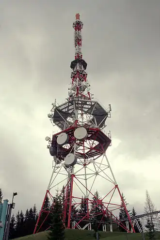 The Zakopane-Gubałówka transmitter (Polish designation: RTON Gubałówka) is a facility for FM- and TV-transmission on the Gubałówka mountain at Zakopane, Poland. The Zakopane-Gubałówka transmitter uses a 102-metre-high (335 ft) free-standing lattice tower located at 49°18′25″N 19°56′25″E / 49.30694°N 19.94028°E. It is situated at 1,122 metres above sea level.