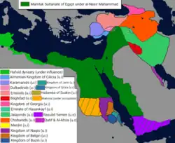 Rough borders of the Mamluk Sultanate under Al-Nasir Muhammad's rule (1310–1341) and the neighbors of the Mamluks, including the Dulkadirids.