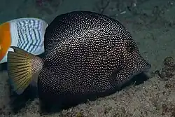 - ^ Christopher Scharpf & Kenneth J. Lazara, eds. (12 January 2021). "Order ACANTHURIFORMES (part 2): Families EPHIPPIDAE, LEIOGNATHIDAE, SCATOPHAGIDAE, ANTIGONIIDAE, SIGANIDAE, CAPROIDAE, LUVARIDAE, ZANCLIDAE and ACANTHURIDAE". The ETYFish Project Fish Name Etymology Database. Christopher Scharpf and Kenneth J. Lazara. Retrieved 10 October 2023.
