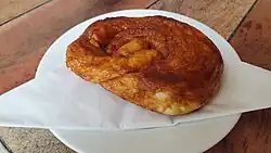 A Zeeuwse bolus (Dutch pronunciation: [ˈzeːusə ˈboːlʏs]) or Zeeuwse bolussen is a sweet pastry of Jewish origin from the Dutch province of Zeeland.[1] They are made by baking a white bread dough rolled in dark brown sugar in a spiral shape, lemon zest (rare and only in some parts of the region) and cinnamon.[2] The shape of a bolus differs between bakers. They are often eaten with coffee, and in some parts of the region the flatter underside is covered with butter.