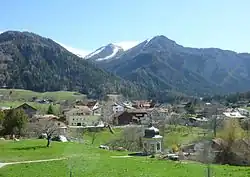In order to begin work on a commission for the new orchestral composition which would become Gruppen, Stockhausen interrupted work on Gesang der Jünglinge in August 1955, retreating to an inexpensive rented room in the attic of a parsonage in Paspels, Switzerland, recommended to him by a colleague in the WDR studio, Paul Gredinger. He had scarcely arrived in Paspels when a message reached him, requesting a short composition to celebrate Heinrich Strobel's tenth anniversary of service at the Südwestrundfunk, Baden-Baden.[2]