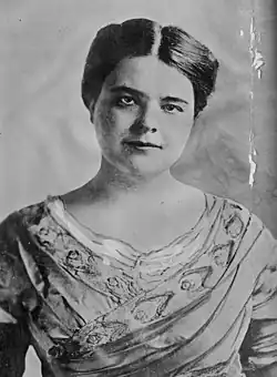 Emerson was active in the labor movement in Chicago for several years,[2] and worked at the Northwestern University Settlement house,[3] before she met Sylvia Pankhurst and moved to England. She was active in the Women's Social and Political Union in London, and in the breakaway group, the East London Federation of Suffragettes. In 1912, she joined Pankhurst in opening the organization's headquarters in Bow Road in East London.[4] Pankhurst wrote that Emerson recognised that the working class audience appreciated that winning the women's suffrage would benefit the men also.[5] Pankhurst and Emerson were arrested for violent demonstrating, including throwing stones at Bow police station[5] in February 1913, and sentenced to six weeks in Holloway Prison. Out on bail, they demonstrated again, and were sentenced to two months' hard labour.[6] On an occasion she was spared arrest, when Emerson with two others approached and whipped Dr Forward who had force-fed her for five weeks, declaring him unfit to practice and that he 'should be force-fed himself'. The doctor stated that he was unhurt in the incident.[5] Emerson was released after a hunger strike, forced feeding, solitary confinement, and a suicide attempt,[7] after seven weeks.[8][4] Her widowed mother was in London to advocate for her release.[9][10] American senator Charles E. Townsend also worked for Emerson's release.[11]