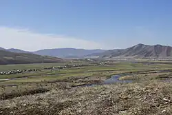 It starts in Selenge sum of Bulgan aimag at the confluence of smaller rivers, and runs in a north-eastern direction, largely parallel to the Russian border.[1] At the sum center of Tüshig sum in Selenge aimag it turns north and crosses the border into the Dzhidinsky District of the Republic of Buryatia in Russia. There it discharges into the Dzhida River after a short distance, next to the village Zheltura.[2]