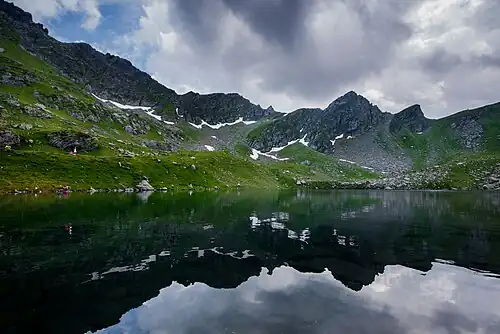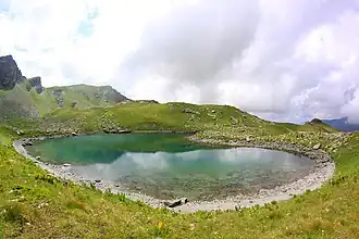 The Zemra Lake (Albanian: Liqeni i Zemrës) is a lake in the western edge of the Republic of Kosovo. Roughly in shape of a heart, the lake stretches inside the Accursed Mountains, some 400 m (1,312 ft) away from Albania. It is situated between 2,200 and 2,500 metres of elevation above sea level on the northern slopes of Maja e Gusanit, near Maja e Gjeravicës.[1]