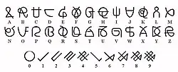 The Zentradi alphabet from the original Macross TV series and the spoken form of the Zentradi language from the Macross: Do You Remember Love? film appeared again in the Macross 7: Encore OVA and the Macross Frontier animated television series.[19][20][21] Both the fictional Zentradi language and its alphabet have been used in several video games that take place in the Macross universe.[1][22][23]